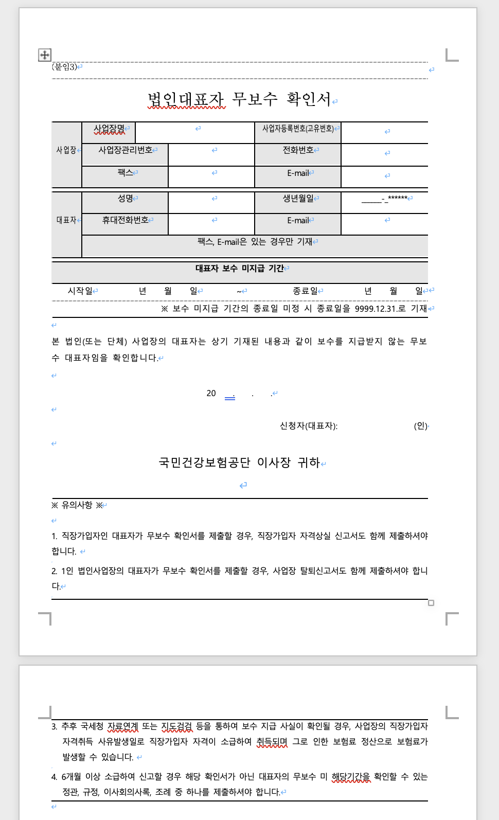 1. '대표 무보수 확인서'를 팩스로 제출하면 됩니다. (요즘세상에 팩스로)