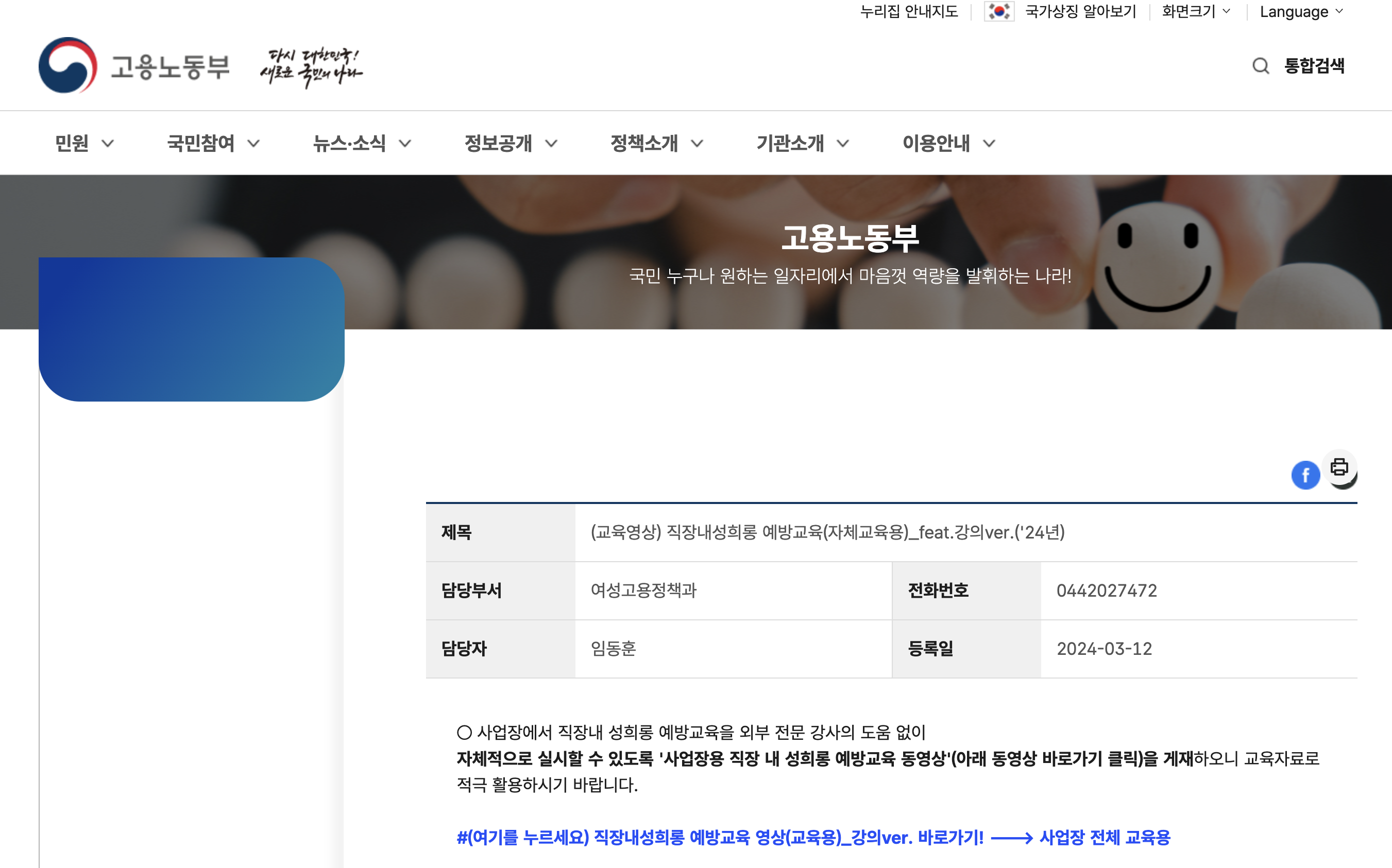 유튜브 교육동영상이거나 아래 PPT(고용노동부 url에 있는 파일)를 쓰시면 됩니다.