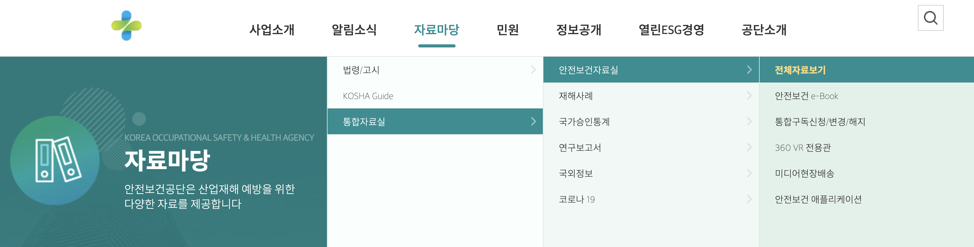 안전보건공단 > 자료마당 > 통합자료실 > 안전보건자료실 > 전체자료 보기