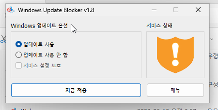 다시 복구 하고 싶을땐, "업데이트 사용" 누르고 "지금 적용" 누르시면 됩니다.