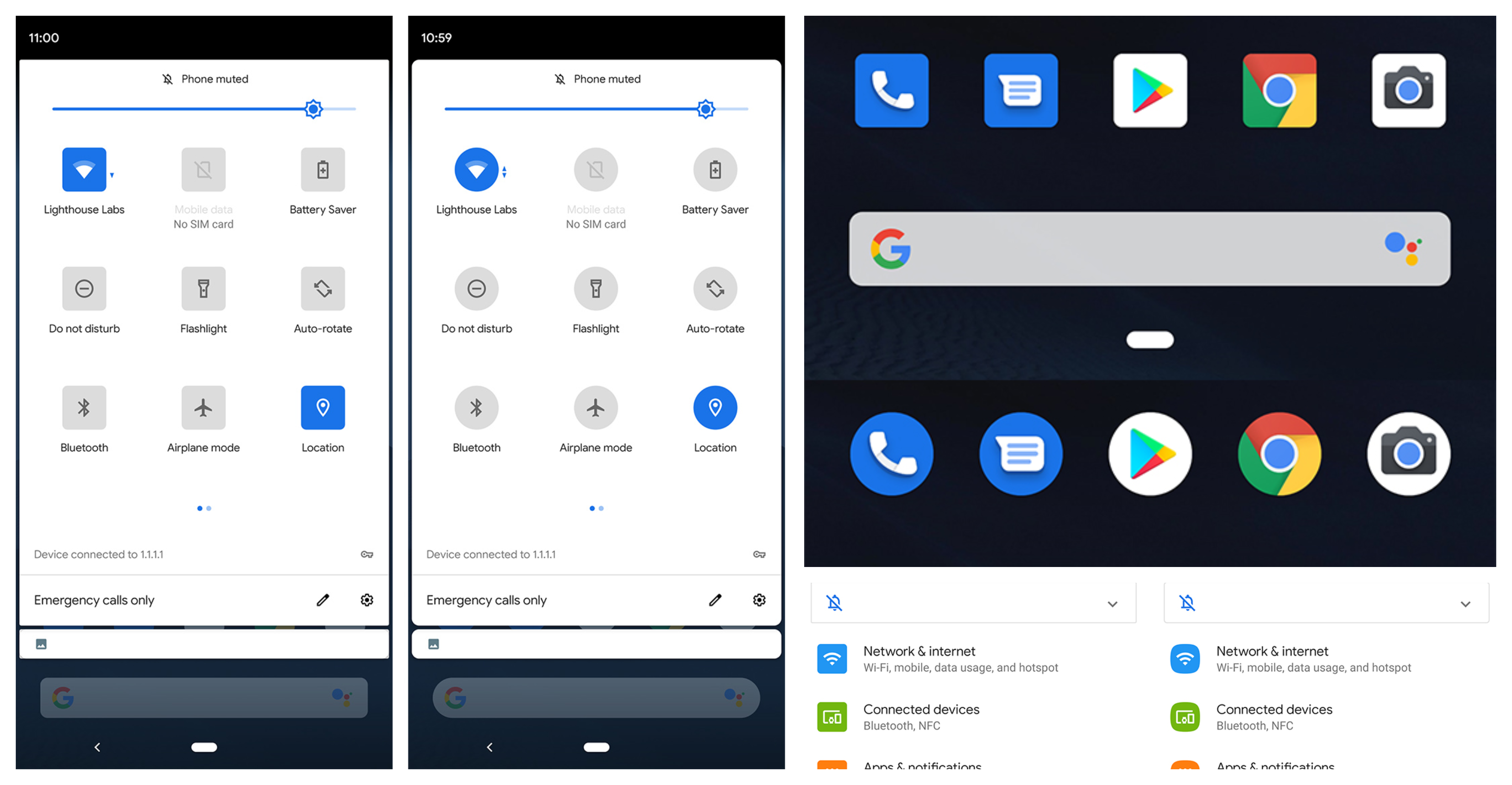 특정 런처를 통해서 어댑티브 아이콘으로 모양을 변경하게 되면, 런처 아이콘 리스트 화면 뿐만 아니라, 알림창의 아이콘, 상단 퀵 설정창의 아이콘, 환경설정창의 아이콘까지도 변경이 가능합니다. (출처)