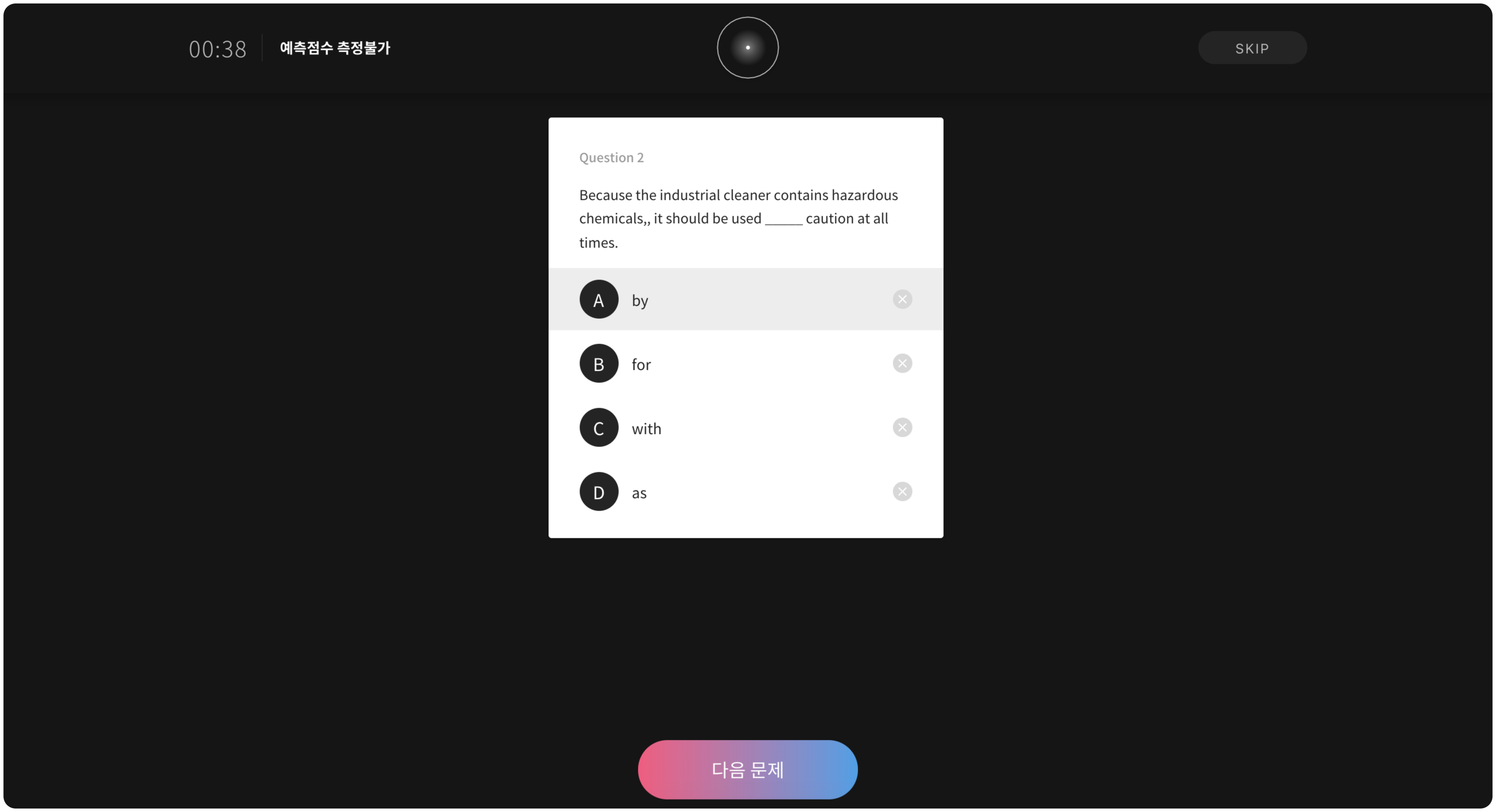 객관식으로 A~D까지 중에 잘 찍어 봅시다.