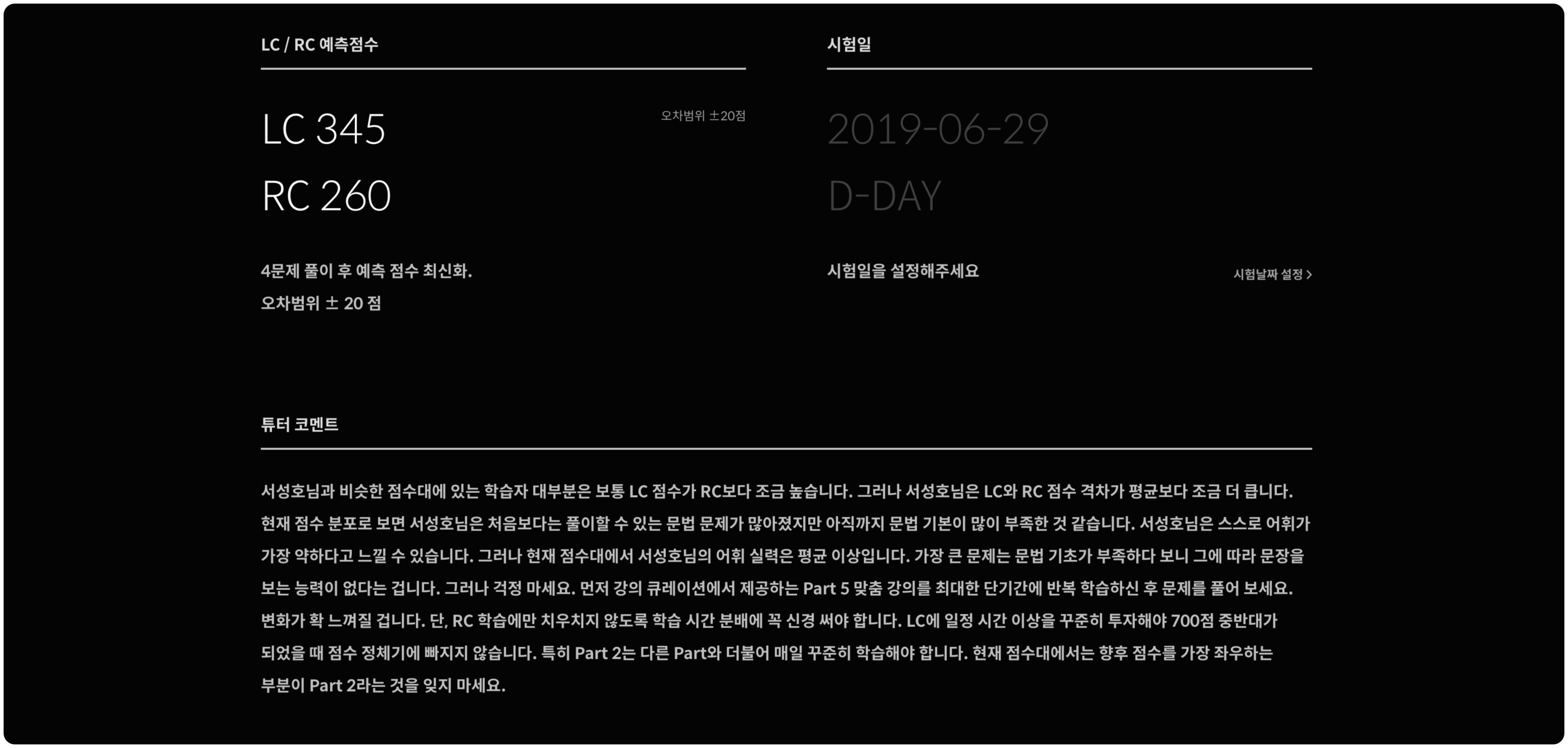 상세하게 LC와 RC의 예상 점수도 알려주고, 코멘트도 달려있네요